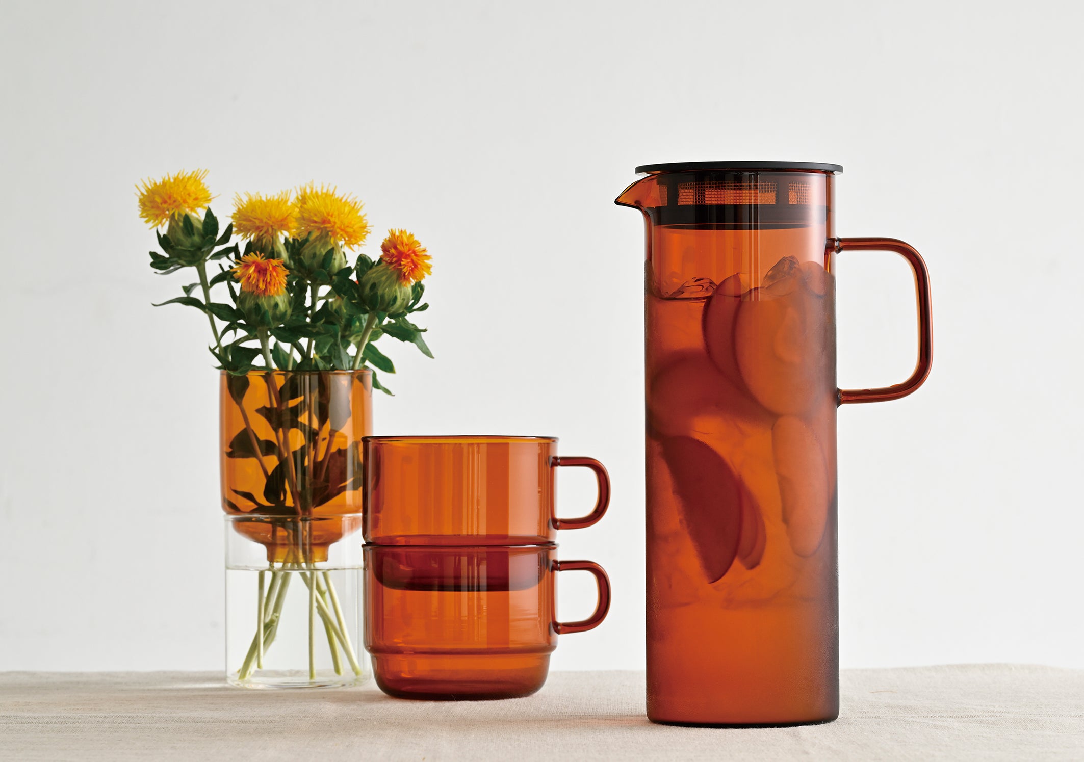 Introducing "HARIO COLORS," a stunning series crafted from heatproof glass that brings a pop of color to any tabletop. The Cold Brew Pitcher features a lid with a mesh filter, perfect for infusing tea leaves or creating refreshing fruit water and teas. Simply add ingredients, brew, and pour directly for a delightful and versatile beverage experience.