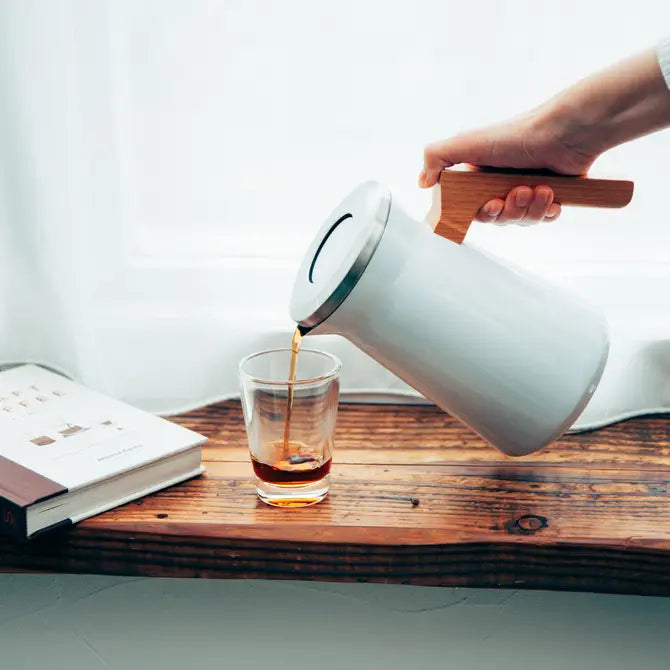 Introducing the Hario Double-Walled Stainless Steel Pot, designed for both heat insulation and style. Crafted from stainless steel with a natural wood handle, this pot keeps water or tea hot for extended periods. Its versatile design accommodates a dripper for brewing coffee directly into the pot, maintaining its warmth. Enjoy the blend of functionality and elegance with Hario's commitment to quality and craftsmanship