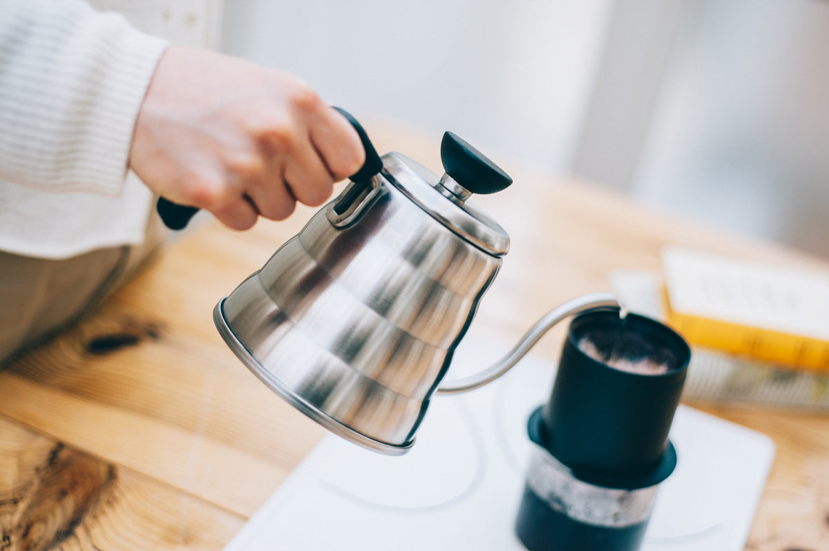 This coffee drip kettle features a slender spout that enhances precision when pouring hot water, ideal for achieving optimal extraction while brewing with a V60. Its design ensures effortless control over water flow and quantity, making it a must-have for coffee enthusiasts.